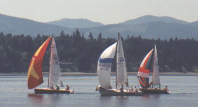 June Regatta Red Scare, Graffiti, and Flasher under spinnaker